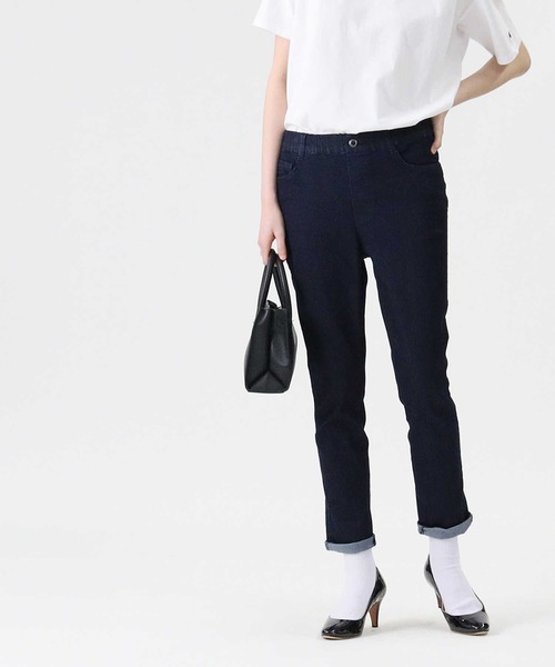 nobeeラインナップに、SUMMERシリーズが登場!のびのびで穿きやすいのに、見た目はデニム。お出かけシーンから、アウトドアシーンまでいろんなシーンで活躍するアイテムです。よりデニムらしい加工感にこだわっているので、楽ちんにかっこいいデニムを穿きたい人にぴったり。細すぎないスキニーシルエットで、いろんなアイテムに合わせやすいのがポイント。どんな姿勢でも安心の股上。ウエストゴムではきやすさもばっちり。フロントポケットはダミーで、ウエスト周りがすっきり見えます。お尻がきれいに見えるようにこだわったポケット設計。接触冷感機能付き。