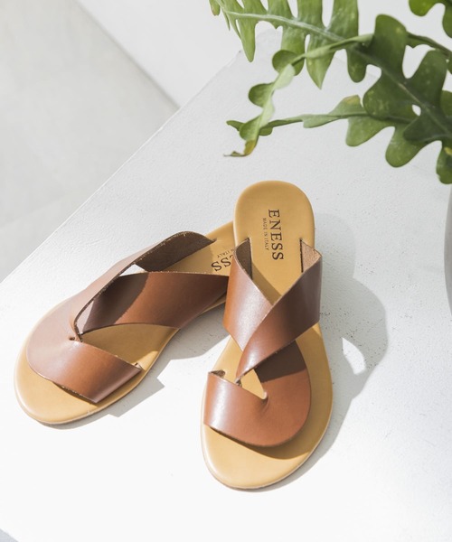 【小粋なスタイリングに昇華させるエフォートレスな1足】 今年のムードに合う、リラクシーなフラットサンダル。 1点投入で今年らしいスタイリングに仕上がるこなれ感と足首ストラップ無しで楽に履けるフラットヒールで履き心地も兼備。 アッパーに施された立体的なディテールは牛革を使用しており、大人らしいデザインに仕上がっています。 ENESS(エネス) 洗練されたデザインでありながら、快適な履き心地を叶える、エレガントでスポーティーな女性に向けられたイタリア発のシューズブランド。最新のトレンドを取り入れながらも、ハンドメイドから生み出される揺るぎない品質のサンダルは、本物志向のイタリア女性から熱い支持を受け続けています。 【スタッフ着用コメント】 試着サイズ : 38 38だと少し踵が余るくらいのサイズ感なので、37でちょうど良さそうです。甲幅も少しゆとりがありました。 [スタッフデータ] 普段の着用サイズ : 23.5~24.0cm 足長 : 23.5cm 足囲 : 22.5cm 足幅 : 普通 ※履き心地には個人差がございますので、あくまでも目安としてご覧ください。 ※靴箱破損につきましては、商品に不良が無い場合に限り出荷させていただいております。予めご了承ください。 ※商品画像は、光の当たり具合やパソコンなどの閲覧環境により、実際の色味と異なって見える場合がございます。予めご了承ください。 ※商品の色味の目安は、商品単体の画像をご参照ください。