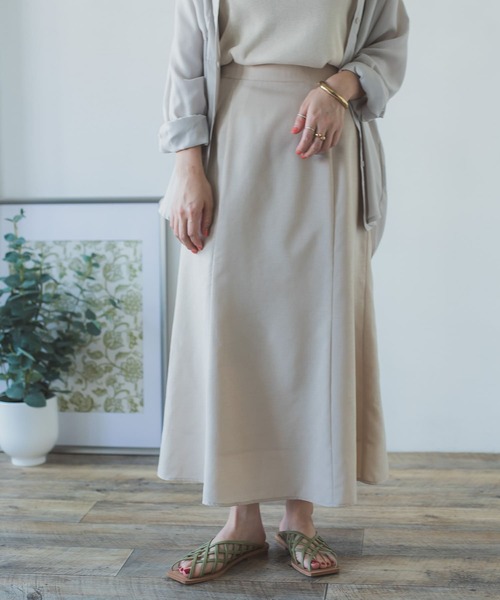 女性らしいセミフレアシルエットが魅力のロングスカート。ウエストの後ろ身頃にゴムを施しているので、楽な履き心地ながらもスッキリとしたルックスで着用いただけます◎ポケットをカットしもたつきのない美しいディテールを実現。シーンを選ばず取り入れやすいオススメの1着です! ----------------------------- 《スタッフ着用コメント》 年齢 : 20代後半, 身長 : 161cm, 体型 : 普通/骨格ウェーブ パーソナルカラー : ブルベ夏 普段の着用サイズ : M 【着用サイズ】free 【サイズ感】スカートは腰回りはそこまでフィットしていません。膝上あたりから広がったデザインなのですごくスッキリ着痩せして見えます! 【素材感・着心地】サラッとした肌触りでこれからの季節にぴったり。スカートに裏地がついていますがひっつく感じもありせんでした。 ----------------------------- ※この商品(BLU GRY)は、実際はカーキに近い色味です。 ※商品画像は、光の当たり具合やパソコンなどの閲覧環境により、実際の色味と異なって見える場合がございます。予めご了承ください。 ※商品の色味の目安は、商品単体の画像をご参照ください。 ▼お気に入り登録のおすすめ▼ お気に入り登録商品は、マイページにて現在の価格情報や在庫状況の確認が可能です。 お買い物リストの管理に是非ご利用下さい。 ----------------------------- 透け感:なし 伸縮性:なし 裏地:あり 光沢:なし ポケット:なし -----------------------------