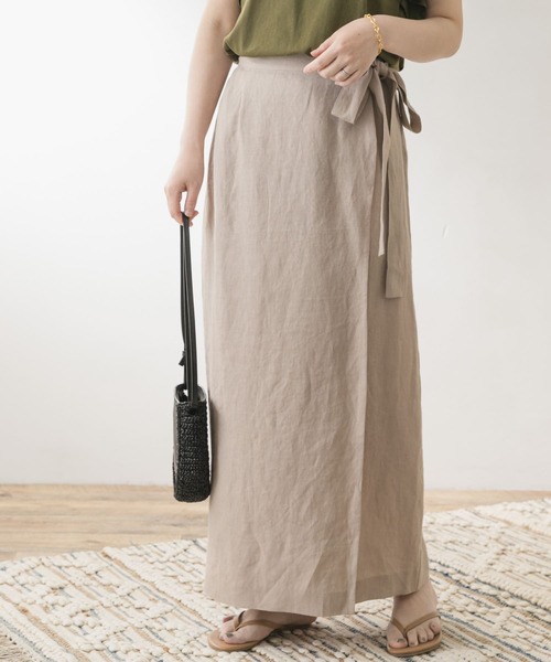 【ウエストリボンが魅力のリネンラップスカート】 リネン素材を使用したラップデザインがポイントのロングスカート。ウエストリボンがアクセントになり、高めに設定したウエストはスタイルアップ効果が期待できます。シンプルなトップスを合わせても、スタイリングが決まる優秀アイテムです。 F by ROSSO / エフバイロッソ "F"はもっとも女性らしいアルファベット。Female/Feminine/Forte/Fashion/Flowerなど、女性を形容する英単語の頭文字として象徴的な"F"をイメージソースに生まれた「F by ROSSO」。自身のファッションスタイルもトレンドも分かっている大人のためのユースフルなファッション。 ※この商品は、素材の特性上、激しい動きで強い力がかかったり、他のものに引っ掛かったりすると、滑脱(縫い目が滑って開いたり、縫いしろが抜ける)したり、目寄れ(織り糸が滑って片寄り、織り目が開く)が生じる場合があります。ご使用の際には十分ご注意ください。 ※素材表面のネップ(部分的に太くなっている)やスラブ(太さにムラがある)などの糸ムラは、麻の素朴な特徴を生かしたものです。 ※その他お取り扱いに関しましては、商品に付属のアテンションタグをご覧ください。 ※商品画像は、光の当たり具合やパソコンなどの閲覧環境により、実際の色味と異なって見える場合がございます。予めご了承ください。 ※商品の色味の目安は、商品単体の画像をご参照ください。 ----------------------------- 透け感:なし 伸縮性:なし 裏地:なし 光沢:なし ポケット:なし -----------------------------
