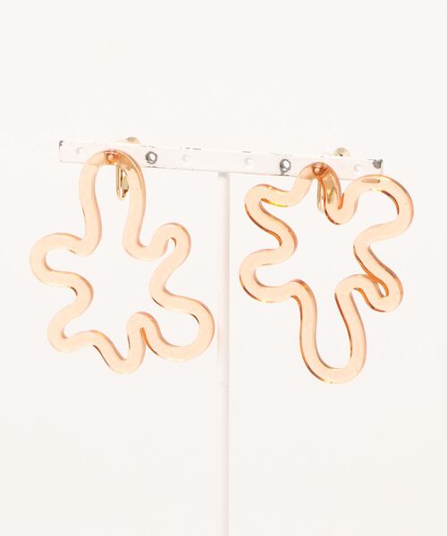 大きめのお花がかわいいクリアイヤリング。ランダムなウェーブがかわいいアイテムです。こちらのアイテム一つで、耳元の存在感がアップします。