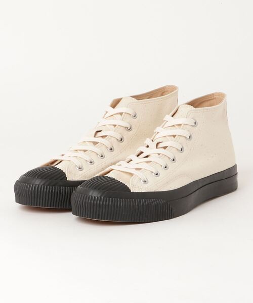 pras-07-001-kib"JAPANISM PRODUCT"をコンセプトに、2015秋冬よりコレクションをスタート。アッパーに岡山児島で生産する”児島帆布”を使用し、創業140年の歴史を持つ福岡久留米の”ムーンスター”でバルカナイズド製法で製作されたスニーカーのレーベル。PRAS初のモールドソールを使用したアイテムになります。モールドソールとは、定番のLOWCUTなどのロールソールと違い、厚みを持ったビジュアルで若干硬さはでるものの、耐久性とクッション性はアップしています。久留米ムーンスター製のバルカナイズドスニーカーです。”シェルキャップ” つま先の貝殻モチーフの型が特徴のです。