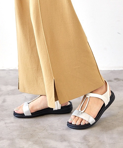 オーバル金具が大人なポイントの定番人気サンダル。 返りが良いモールドソールの歩きやすさも人気のアイテムです。 キレイめスタイルからカジュアルスタイルまで幅広く活躍する万能デザイン♪ ストラップサイドにはゴムが入っているので、脱ぎ履きもスムーズに。
