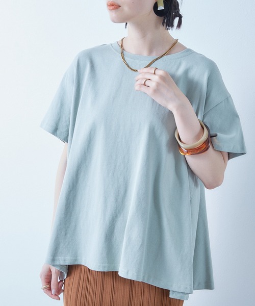 バックドレープがフェミニンなアクセントになる、ドレープTシャツ人気の無地Tシャツに、ドレープをあしらい、エレガントに仕上げた半袖カットソーです。10オンスと厚手の素材感で、春先から秋まで長くお使いいただけます。【DESIGN】バックにドレープをあしらい、フェミニンムード満載のカットソー。フロント部分は、ラウンドネックで、すっきりとした印象に仕上げました。無地のボディなので、合わせるアイテムを選ばず、幅広い着回しをお楽しみいただけます。お買い物やお出掛けはもちろん、旅行などのレジャーシーンにも活躍するカットソーです。---------------------透け感:なし厚さ:厚め伸縮性:ありポケット:なし---------------------【STYLING】パンツスタイルに合わせるなら、スラックスやカラーパンツにタックインで。スウェットパンツを合わせれば、トレンドライクな韓国ファッションになります。足元は、ローファーやハイカットスニーカーで、きれいめカジュアルに決めて。ミニボストンバックやスクエアバッグを合わせて、トレンチコートを羽織れば、秋コーデの完成です。スカートスタイルなら、ニットスカートやレザースカート、プリーツスカートに合わせて。タックアウトで合わせれば、Tシャツのフレアな裾ラインが、さりげなくエレガントさをプラスします。足元は、厚底シューズやスクエアトゥのパンプスで、こなれ感を加えるのがポイント。カーディガンを羽織れば、秋冬から春先にも活躍する、レイヤードスタイルの完成です。【色展開】・オフホワイト(白 白色)合わせるアイテムを選ばない、万能カラー。・チャコールグレー(灰 灰色)レディライクな印象になる、くすみグレー。・ライトグリーン(緑 緑色)さわやかな印象になる、ミントカラー。・ピンク(桃 桃色)フェミニンなアクセントになる、ダスティーピンク。【お買い物をもっとお楽しみいただくために】▼商品のお気に入り登録▼完売カラーの再入荷通知や、人気アイテムのラスト1点通知、プライスダウンしたセール通知も受け取ることができます。▼ブランドのお気に入り登録▼ECRIRE(エクリール)レディースアイテムの新作や再入荷等、いち早くブランドのお得な情報を受け取ることができます。