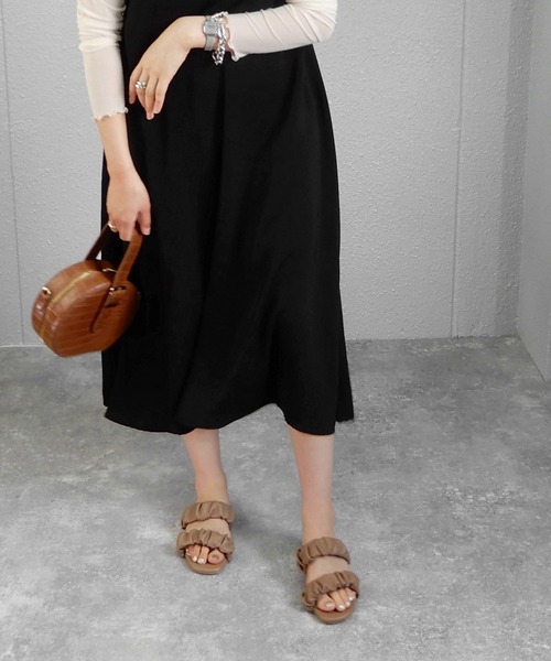 [ alala,minia ] ◇再入荷◇たっぷりのギャザーがかわいい技ありフラットサンダル。アイキャッチでおしゃれ心をくすぐる1足。足元をガーリーにもフェミニンにもしてくれて、ハンサムスタイルと合わせれば、コーデの外しアイテムとしてポイントにもなる、履き回し力抜群のフラットサンダルです。つま先と甲の2本のストラップは足をしっかりホールドするので、フラットサンダルなのにしっかりと着用感があり、安心の履き心地。走っても脱げたりしないので、毎日使いの他、レジャーや旅行先でも活躍します。ぺたんこサンダルは軽くて持ち運びもしやすいので、おでかけ先のサブシューズとしてもGOOD。つっかけタイプでサッとはけるのでワンマイルシューズとしても◎春夏のきれい色のフレアスカートと合わせたり、ゆるてろ素材のボトムスと合わせて引き締めポイントにしたり、毎日履きたくなっちゃうヘビロテサンダルです。-----------------・ブラック・ホワイト・モカ・グリーン-----------------●スペック・ヒール高さ…約1cm・片足重量(M)…約180g・中敷下全体に4mmの低反発スポンジを採用。-----------------●サイズ目安・Sサイズ…22.5cm程度・Mサイズ…23.0~23.5cm程度・Lサイズ…24.0~24.5cm程度・LLサイズ…25.0~25.5cm程度-----------------●サイズ感標準的。23.0cm・23.5cm(幅甲普通)は、Mサイズがぴったりでした。23.5cm(幅広甲高)もMサイズでぴったり!甲も幅も痛くなく問題ありません。< 足幅 >狭い □□■□□ 広い< やわらかさ >柔らかい □□■□□ 硬い-----------------●サイズ詳細( S / M / L / LL )【甲周り(底面+甲一周)】 21.6 / 22.1 / 22.6 / 23.1【足幅(底面)】 7.8 / 8.0 / 8.2 / 8.4-----------------alala/アララminiaの姉妹ブランド。シンプルで使いやすい定番アイテムにトレンド素材やカラーをMIXし、取り入れやすいイマドキ感をお届けします!メインブランド minia/ミニア では、結婚式やパーティ・二次会でも使えるシンプル上品なアイテムから、通勤・オフィスカジュアル・通学などデイリーユースに使えるカジュアルな定番アイテムまで幅広くラインナップ。靴・バッグの他、イヤリング・ピアス・ネックレス・ヘアゴムなどのアクセサリー/ヘアアクセサリーなど、韓国ファッションで人気のアクセ・雑貨も取り扱っています。プレゼント/贈り物/お返しにもぴったり。試しやすいプチプライス~素材や機能性にこだわったアイテムもご用意。また、靴箱に再生紙を使用するなど環境に配慮したサステナブルなものづくりに取り組んでいます。※お使いのモニターや閲覧環境により、実際の色味と違って見える場合がございます。※生産時期により僅少なサイズ感のブレ・色ブレが生じる場合がございます。生産工程上やむを得ないことであり不良ではございません。予めご了承くださいませ。※素材の特性上、色移行が生じる場合がございます。特に汗や雨で濡れた場合、淡い色の靴下・ストッキングや小物・衣類などへの色移行に十分ご注意ください。※水に濡れた場合はすぐに乾拭きして風通しの良い場所で日陰干してください。市販のクリーナー・洗剤をご使用の場合は取り扱いにご注意ください。