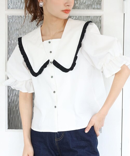 ~NICECLAUP 2021 early summer Collection~■世界一可愛いブラウスに新色が加わって登場!!大人気のブラウスがブラッシュアップ!!!前回よりも少し大きめの三角襟が施されており、周りにはフリル施されてます。胸元部分が開きすぎないように、布がドッキングされているので安心して着ていただけます。袖コンシャスなデザインで女性らしさをプラス。軽い着心地ですので、夏でも着ていたけるのが魅力の一つ。※オフホワイトのボタンがサンプルのため実際と異なり、 実際は黒いボタンが付きます。【スタイリング】スラックスパンツやデニムパンツで大人可愛く着られます。ミニスカートやショートパンツで甘めに仕上げても◎またジャンパースカートやサロペット合わせなら、こなれたコーディネートに仕上がります。-------------裏地:袖はあり伸縮性:なし生地の厚さ:普通生地の重さ:軽い-------------※サンプルでの撮影のため、実際のものと仕様や色が異なる場合があります。※室内、室外での撮影のため実際より明るく映っていたり、暗く映っていたりする場合がございます。※品質表示を必ずご確認下さい。▼お気に入り登録のおすすめ【気になるアイテムを登録】ハートをクリックしてお気に入りに登録すると完売カラーの再入荷やラスト1点の通知、セールの通知を受けとることができます。【ブランドを登録】新作入荷や再入荷、セール通知など、いち早くブランドの情報を受けとることができます。是非ご利用下さい♪