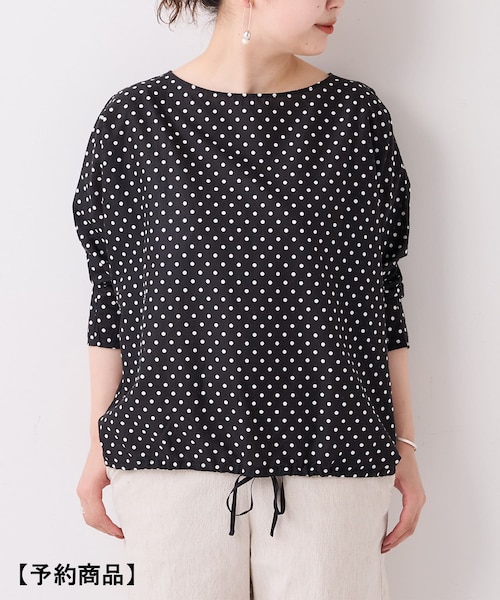 《予約》5月下旬頃お渡しTシャツ感覚できられるドルマンスリーブのブラウス。袖下に伸縮性のあるジャージー素材を用いているので、腕が締め付けられずゆったりと心地良い着心地です。身頃はハリ感のある素材で、さらさらと快適に着ていただけます。裾についたリボンをキュッと絞れば、スカートやワイドパンツに。緩めに絞って細身パンツと合わせてもバランスが取りやすくなっています。【商品をお気に入り登録しておきましょう!】気になるアイテムは、♡マークをクリックしておくことで、スムーズにお買い物が楽しめます。・ラスト一点のお知らせ・再入荷のお知らせ・予約商品が店頭に入る際にお知らせ・SALEのご案内