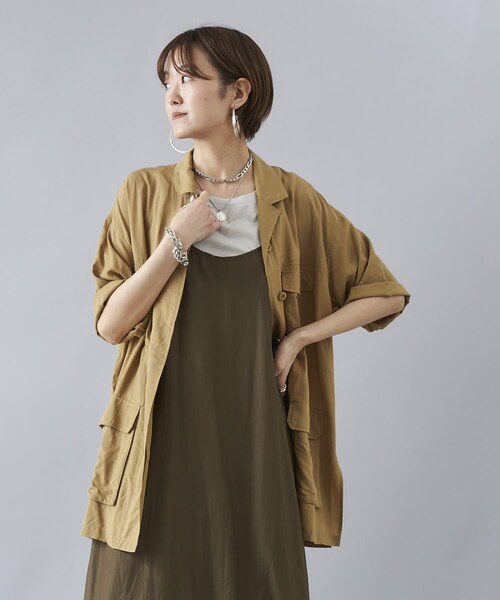 \トレンドアイテム!ユーズド感のあるサファリシャツジャケット/開襟デザインのサファリシャツジャケットが登場。ゆとりのあるルーズなシルエットに、フロントの大きなパッチポケットが特徴のカジュアルなアイテム。カジュアルながらも、落ち感のある軽やかな素材感で大人な印象をプラスしました。パンツスタイルにはもちろん、フレアシルエットのフェミニンなスカートやワンピースなどに合わせてピリッとアクセントとして取り入れるのがおすすめの着こなしですよ♪*********************・トレンドのサファリジャケットを軽やかなシャツに・ルーズなサイジングでリラクシー・着こなし様々!*********************【 ♥ をクリックでお得な情報をお知らせいたします 】〈 商品のお気に入り登録 〉 お気に入りアイテムのお値下げ・再入荷・在庫ラスト1点など通知を受けることができます。〈 ブランドのお気に入り登録 〉DOUDOUの新商品や再入荷、セール、クーポン配布などお得な情報を受けることができます。--------------------------------------※ 掲載画像の商品の色味は、 撮影場所や光の当たり具合などにより色味が異なって見える場合がございます。 また、お客様のお使いのPC・スマートフォン等のモニター環境などにより色味が異なって見える場合がございます。予めご了承の上ご注文ください。 ※着用、お取り扱いの際は、商品についている品質表示とアテンションタグを必ずご確認下さい。