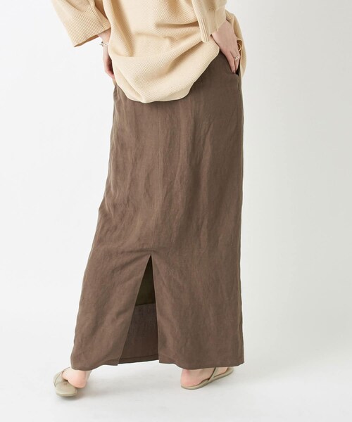 リネン混でシーズンムード高まるナロースカートIラインのシルエットとバックスリットが大人の女性らしさを演出してくれるナロースカート。ウエストゴムと程よいゆとりがあるのシルエットでストレスフリーな履き心地。ボリュームのあるトップスに合わせたコーディネートがトレンド感が出るのでおすすめ!きれいめからカジュアルスタイルまで幅広く楽しめる万能な1枚です。・後ろゴムでリラクシーな履き心地・ポケット付きで機能的・バックスリット入りで足さばき良く履ける・スニーカー合わせや女性らしいストラップサンダル合わせがおすすめモデル情報:H165 B80 W60 H86 着用サイズ:36モデル情報:H165 B83 W60 H84 着用サイズ:36詳細着用モデル:H159cm 着用サイズ:36洗濯方法:手洗い透け感:なし裏地:あり(ホワイトのみ)伸縮性:なしウエストゴム:あり生地の厚さ:普通光沢感:なしファスナー:ありポケット:あり#主役級アイテム#体型カバー#着やせ#大人カジュアル#リラクシーカジュアル#ベーシック#ロングスカート#マキシスカート#ワンマイル#大人可愛い#今買いアイテム#ストレスフリー--------------------------------------------------------------------------------【注意点】※画像の商品は光の照射や角度、お使いのモニター環境により、 実物と色味が異なる場合がございます。あらかじめご了承下さいませ。--------------------------------------------------------------------------------【『♡』をクリックでお気に入り登録】・ラスト1点や再入荷の通知が届きます。--------------------------------------------------------------------------------【スタッフ着用コメント】《MEGUMI》身長:159cm/細身/普段サイズ:S/着用サイズ:36サイズ感:窮屈感なく着用できるサイズ感です。素材感:ソフトでナチュラルな風合い。心地良い素材感でした。着心地:後ろスリット入りで動きやすかったです。シルエットはストレートですっきり見えしますが、ウエストゴム仕様でタイト過ぎないため、長時間の着用もストレスなく着用できそうです◎