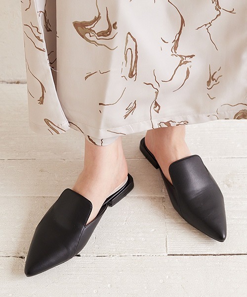 サイドのオペラカットとポインテッドのトゥラインがスタイリッシュなスリッパミュール。すっきりとしたポインテッドトゥが足元をシャープにみせてくれます。 デイリーに取り入れやすいシンプルデザイン&フラットソールで、大人カジュアルなスタイリングにもぴったりです。 インナーには足あたりソフトなウレタン素材を使用しました。 ※撮影は室内で行われており、ライティングにより実物と色味が少し異なる場合がございます。 ※柄の商品は、裁断により左右・掲載写真と柄の出方が異なります。予めご了承ください。