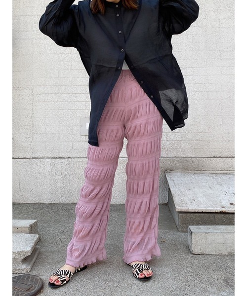 <ZOZOTOWN店限定セカンドライン”LiSeeK”> 【商品説明】 柔らかいジョーゼット生地に細やかな折り目のマジョリカプリーツ加工を施したワイドパンツ。 歩くたびにふわふわと揺れ動き表情豊かで、 フェミニンな印象に仕上がります。 足の曲げ伸ばしもしやすく、 ストレスフリーな履き心地でシワにならず保管やお手入れも簡単。 シンプルなトップスとでもオシャレ見えするパンツは、 夏に数本揃えておきたいアイテムです。 シンプル/カジュアル/オシャレ/デザインパンツ シアー/大人パンツ/夏コーデ 【生地感】 透け感:あり 裏地:あり 伸縮性:あり 生地の厚さ:薄手 <LiSeeK (リシーク)> 【list】と【seek】の造語 ショッピングで探し出す楽しさ クローゼットから選ぶ楽しさ 新たな自分を見つける楽しさ そんな一覧の中【list】から【seek】探し出し お気に入りを見つけて欲しい・・・ 程よくトレンドで今っぽい 無理なく日常に溶け込むstyleを提案するブランドです。 ※撮影場所やお使いのモニター環境により若干お色味が異なる場合がございます。 ※お取り扱いに関しましては、商品に付属のアテンションタグをご覧ください。 ※生産時期により色・素材・サイズ感など多少異なる場合がございます。 予めご了承ください。 <おすすめ便利機能> ▼商品のお気に入り登録▼ 商品ページ内のハートマークをクリック! 完売カラーの再入荷や、 ラスト1点の通知、 お得なお値下げの通知を受ける事ができます。 ▼ブランドのお気に入り登録▼ 新商品や再入荷など、 ブランドのお得な情報をいち早くお知らせします。 ぜひご活用ください!