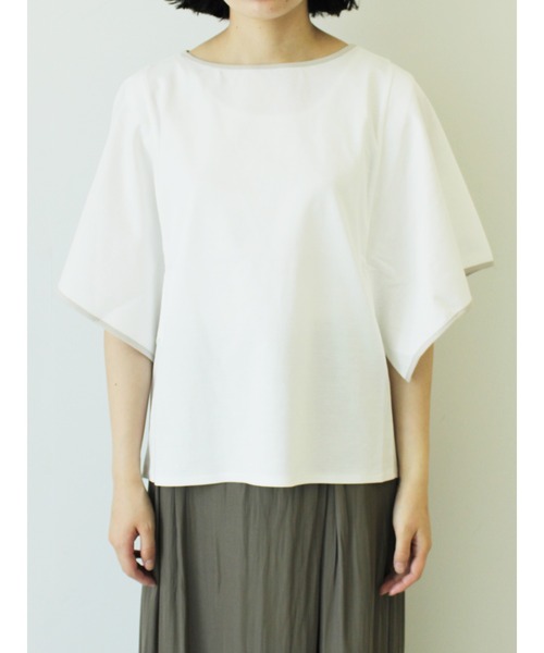 ふんわりと広がるフレアスリーブが可愛らしいプルオーバー。配色パイピングが引き締めポイントに。広めのネックラインが女性らしい首元を演出し、抜け感のある着こなしを後押ししてくれます。シックなカラーが大人っぽく、ゆったりとしたシルエットで体型カバーしてくれるおすすめのアイテムです。