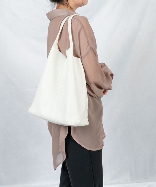 【くたっととても柔らかい上品な質感のフェイクレザートート】 一重仕様の柔らかいフェイクレザーのスリットデザイントートバッグ 同素材のバッグインバッグにもなるポーチ付きなので、荷物の整理もしやすくお仕事用にもぴったりです。 A4サイズもさっと入れられる大きい開閉口はマグネット仕様なので出し入れもしやすいデザインです。 オンオフ問わず大人カジュアルに仕上げてくれる洗練されたデザイン。 ラフなコーディネートに合わせても崩れすぎず上品に決まるベーシックなシンプルデザインです。 カラーバリエーションは定番色を揃えました。 差し色はレザートートでは珍しいホワイトを入荷。 ノーカラージャケットやバミューダパンツと合わせたら抜け感のあるスタイルが出来上がります。 【キャメル】 オンもオフも問題なしの定番カラー。 かっちり目のシャツにもラフなワイドパンツにも合わせやすくオールシーズン使えるオススメカラーです。 【ブラック】 都会的な印象になり引き締め効果抜群の大人なカラー。 ラフなワイドシャツワンピース等に合わせても引き締まり、メンズが持っていてもおしゃれなユニセックスカラーです。 オフィスカジュアルにもオススメのカラーです。 【ベージュ】 優しい印象でどんなスタイルにも合わせやすい上品カラー。 明るい色のお洋服にもシックな色合いのスタイルにも合う万能色です。 【ホワイト】 オールホワイトコーデにぜひ使って欲しいワンランク上のおしゃれカラー。 ベーシックな形だからこそ取り入れやすいホワイトカラー。 ぜひコーデの主役に取り入れてみてスタイリングを楽しんで◎ ※撮影環境やご利用の画面により見え方やカラーに差が出る場合がございます。 ◆ブランド品番:LC45119919◆ ◆ 商品お気に入り登録 ◆ 右のハートをクリックすると、お気に入り登録アイテムの再入荷・在庫ラスト1点等の通知を受け取れます。