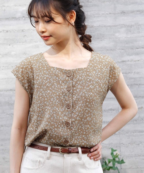 スカートとシリーズ展開のブラウス。 バイカラーの小花柄が少しレトロで上品な雰囲気に仕上げてくれます。 シンプルなデザインですが、腕をきれいに見せてくれる袖のラインにこだわりました。 スカートとセットでワンピース風に着るのはもちろん、 シンプルなデニムや無地のボトムとも相性抜群◎ ボタンを少し開けてインナーを覗かせた着こなしもおすすめです。 スクエアネックデザインで顔周りをすっきりと見せてくれます。 バックにギャザーを施し、ふんわりとした女性らしいシルエットに。 さらっとした肌触りで清涼感があります。 軽く柔らかいのでこれからの季節に活躍の1枚です。 - - - - - - - - - - - - - - - - - - - - - - - - - - - - - - - - - 透け感:なし 裏地:なし 伸縮性:なし 光沢感:なし - - - - - - - - - - - - - - - - - - - - - - - - - - - - - - - - - ※ 撮影時の照明などの環境と、モニターに表示される色味がメーカーにより変わってしまう等の理由により、実際にお届けする商品と、ご覧になられているアイテムの色が若干異なる場合がございます。ご了承下さいませ。