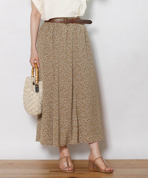 ブラウスとシリーズ展開のスカート。 色味を抑えたバイカラーの小花柄で、レトロで上品な雰囲気に仕上げてくれます。 落ち感のある生地で広がらず、すっきりと華奢見せも◎ やや長めのロング丈なので、低身長さんから高身長さんまで幅広くお使い頂けます。 ブラウスとのワンピース風の着こなしはもちろん、 ロゴTやシンプルなカットソーと合わせたカジュアルな着こなしもおすすめです。 ウエストはゴム仕様で快適な穿き心地が叶います。 ベルトループ・ポケット付きで実用性も◎ さらっとした肌触りのポリエステル素材。 裏地付きで安心して穿いていただけます。 - - - - - - - - - - - - - - - - - - - - - - - - - - - - - - - - - 透け感:なし 裏地:あり 伸縮性:なし 光沢感:なし - - - - - - - - - - - - - - - - - - - - - - - - - - - - - - - - - ※ 撮影時の照明などの環境と、モニターに表示される色味がメーカーにより変わってしまう等の理由により、実際にお届けする商品と、ご覧になられているアイテムの色が若干異なる場合がございます。ご了承下さいませ。