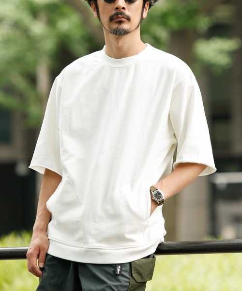洗いがかったヴィンテージのような風合いが楽しめる1着・製品染めの古着のような風合い・スタイリングのアクセントにもなるポケット・リラックスして着れるゆったりシルエット【生地・デザイン】ガシッとしたタフな生地感が特徴のTシャツ。古着のようにすこしかすれた風合いがカジュアル感をアップしています。裾部にはポケットがついており、スタイリングのアクセントになるだけでなく、意外とちょっと便利。トレンドのビッグシルエットで楽に着ていただけます。【コーディネート】デニムやチノパンツ、ショーツなど鉄板のカジュアルコーデはもちろん、スラックスなど組み合わせてMIXコーデにも。【お買いものをよりお楽しみいただく為に!!】▼商品のお気に入り登録(ハートマークをクリック)お気に入りアイテムの完売カラーの再入荷通知や、ラスト1点の通知、セールの通知も受け取ることができます。▼ブランドのお気に入り登録新商品や再入荷など、クーポン配布などのお得な情報を受け取ることができます。【スタッフレビュー】年齢:20代前半 身長:173㎝着用サイズ Mサイズサイズ感:身幅がゆったりとしたシルエット。着丈もやや長めで肩も少し落ちるシルエット。着心地:コットン100%でガシっとした質感ですが、分厚すぎず夏まで快適に過ごせる素材