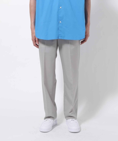 最高品質を誇る「ニッケ」の生地を使った、現代の都市生活に適した万能型スラックス。【素材】 「最高品質を誇る〈ニッケ〉の素材。上質さに加え、日本の夏の気候に合わせた快適さも併せ持つ1枚」 アダムエロぺではもはや定番と言っても過言ではない『ニッケ』のウーステッドトロピカル素材です。2/100という超細番手のウール・ポリエステル混紡糸をバランス良く高密度に織り込むことで、ニッケにしか表現できない緻密さと繊細さを表現した素材になっています。17.5マイクロンのスーパーファインメリノ原料を使うことで、ソフトで肌触りが良く、更には抗シワ性も兼ね備えています。上質なウールとポリエステルの特性を十二分に引き出し、日本の夏の気候に合わせてハイブリッドに仕上げた素材になっています。 【デザイン・シルエット】 「日常生活のユニフォームとして履きたい。綺麗めにもストリートにもモードにも、幅広いテイストのコーデに精通したストレートシルエットスラックス」 モードなストレートシルエットですが、細すぎず太すぎずの、綺麗さと抜け感のバランスの取れた印象の定番スラックスです。今回、腰裏はマーベルト仕様に変更し、高級感を醸し出した仕様に。穿くとキレイに脚長に見えるシルエットが特徴で、現代の都市生活のユニフォームとして綺麗目、カジュアル、ストリートでも、あらゆるテイストのTOPS・OUTERとのスタイリングにハマります。 【カラー】 ベーシックなブラックに加え、独創的な上品さを物語るグレージュとブラウンベージュの3色展開。グレージュとブラウンベージュは、ウールサイドのみを染色することでメランジュ調のナチュラルな優しい表情を表現しました。 【おすすめスタイリング】 太過ぎず細すぎないバランスの良いシルエットの為、ジャストからオーバーサイズまで、トップスのボリュームを選びません。足元はレザーシューズやサンダル、スニーカーなど、綺麗めからモード、ストリートな合わせが可能です。 【モデル身長】 183cm/L ------------------------- 裏地:なし 光沢感:なし 透け感:ややあり ポケット:あり 伸縮性:なし 生地の厚さ:やや薄手 -------------------------