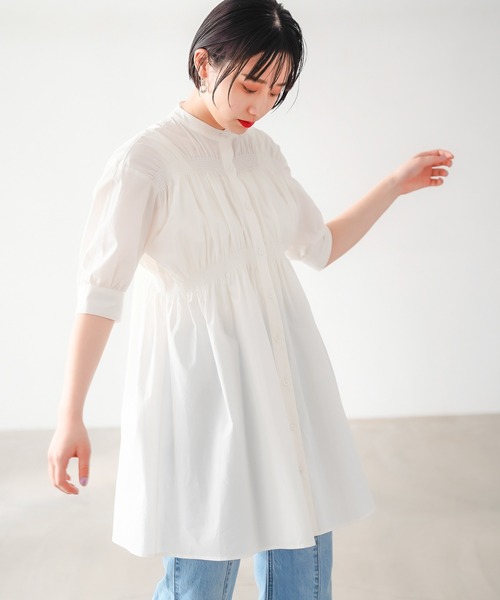 胸とウエストにデザインされたシャーリングがポイントのミニワンピース ウエストのシャーリングが、ボリューム感はあるけど着用した時にはバランス良く見えるようなアクセントとなっています。 後ろもデザインポイントがあるので、バックスタイルも決まるアイテムとなっています。 モードな着こなしが楽しめる、ミニワンピースです。※モニター・環境等により実際の商品と色味が多少異なって表示される場合がございます。予めご了承をお願いいたします。