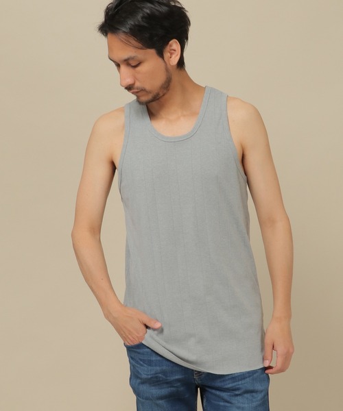 [アイテム説明]ランダムテレコ生地を使用したタンクトップ。シンプルなデザインでデイリーに活躍します。1枚で着るのはもちろん、インナーとして着るのもオススメです。