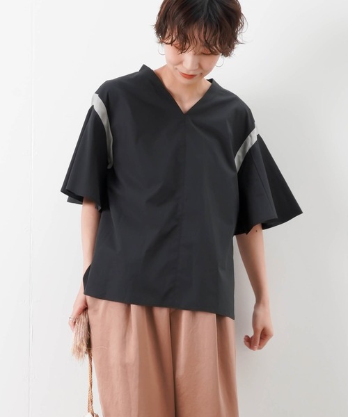 Vネックですっきり見せ ややハリのある生地がきれいめにもカジュアルにも決まるプルオーバー。袖のきれいな広がりが気になる腕回りをカバーし、ほど良く開きのあるVネックが大人の抜け感を演出してくれます。春先から盛夏まで幅広いシーズンに対応出来るアイテムです。 店舗でお問い合わせの際は下記の品番をお申し付けください。 [321103062] -------------------------------- 生地の厚さ:薄手 透け感:【アイボリー】あり【サックスブルー】ややあり【ブラック】なし 伸縮性:なし 光沢感:なし --------------------------------