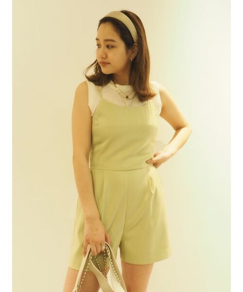 すっきりとしたシルエットのショートコンビネゾンです。落ち感のある合繊素材を使用し、涼しげな印象の一枚となっています。軽い着心地でデイリーに着こなしていただける一枚です。