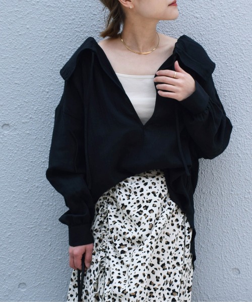 大きめのカラーデザインが可愛いブラウス。 コットンガーゼの生地を使用し、 ふんわりとした質感で肌触りがよく、着心地のいい一枚です。 襟に紐をプラスし、クシュっとした立体感のあるギャザーカラーに仕上げました。 絞った状態でリボン結びで可愛らしいシルエットを楽しんだり、 フロント部分は深めに開いており、あえて紐を緩めたラフ感のある着方も楽しめます。 スカートインやパンツインでガーリー,フェミニンスタイルやフレンチカジュアル風にも、 紐を緩めた状態でネックレスなどでアクセントを付けたラフでヘルシーなスタイルに◎で、 一枚取り入れるだけでトレンド感と大人のこなれ感が叶う優秀アイテムです。 ※撮影場所や明るさにより 実際の商品と色味が若干異なる場合がございます。 ☆商品のお気に入り♡登録を押せば ”再入荷通知”や”残りわずか通知” 値下げのお知らせが届きます! お気に入りのブランド登録していただければ新商品入荷のお知らせも届きますので 是非登録してみて下さい。