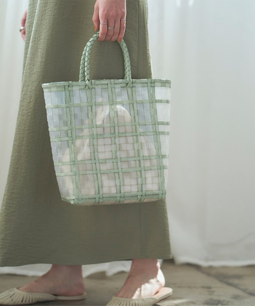 季節ムードを盛り上げるクリア素材のバスケットバッグ。・何かと便利なインナーバッグ付きで使い勝手も抜群。・程よいサイズ感で様々なシーンで使えます。・可愛さも演出しつつ、落ち着きのある大人な印象もプラスするバッグ。※当商品は機械による生産の過程上、どうしても"生地を織る際の糸の継ぎ目"や多少の"ほつれ"、他繊維の"混紡"、また、形やサイズや柄に多少の"誤差"が生じる場合がございます。※サイズは、実寸サイズを測っているため多少誤差がでる場合があります。製造工程の関係上、各採寸箇所実寸(平置き)より【約-3cm~+3cm】程度は誤差の許容範囲とさせて頂いておりますので、予めご了承くださいませ。※メーカーより密封状態で入庫し、検品時に再度袋詰めを行っておりますが、素材により染料等の臭いが強い場合がございます。※発送上の状態によって商品がシワになる場合がございます。※商品により色落ち・色移りがある場合がございますので、品質表示をご確認の上、お取り扱いにご注意くださいませ。