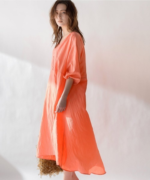 【socolla】リラックス感のあるフレアシルエットのワンピース。前後差がよりリラックスムードを高めてくれます。肩と後ろのギャザーで立体感を出すことで柔らかく、女っぽい。ボリューミーに見えないように、身頃のフレア感とパフ袖のバランスにこだわりました。ストレスフリーなラインと、新鮮なカラーリングで高揚感のあるイメージへ。ワッシャー加工を施した合繊素材はシワが目立ちにくく、華やかで、くつろぎタイムからお出かけまで楽しめるデザインになっています。■model:168cm 着用サイズ:M※画像の商品はサンプルとなりますので実際の商品と仕様、加工、サイズが若干異なる場合がございます。※お客様のモニター環境により実際のお色と多少異なる場合がございます。【socolla】Just the way she is...特別なサプライズがなくても、遠くへ旅行しなくてもいつでも日常の中の素敵なシーンで輝けるようにリラックス感を保ちつつ、けっしてラフ過ぎない「今どき感」「女性らしさ」のあるワンマイルウェアを展開。「飾りすぎない自分らしいスタイル」を好むナチュラルな女性たちへ送る、socolla スタイル。