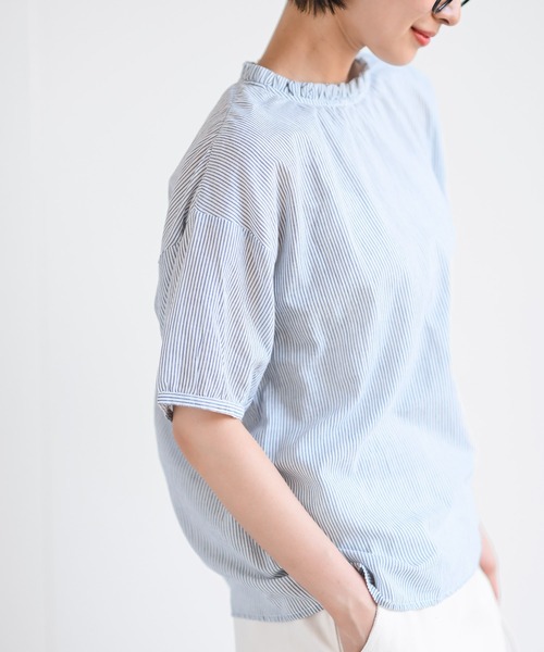 ☆2026/SS 再入荷☆ ふわっと軽いフリルカラーのコットンブラウス 薄手でさらっとしたライトに着られるコットンブラウス。 清涼感もありシーズンムードのある装いが楽しめます。 ほどよくゆとりのあるシルエットでだらしなくならないふわっとしたエアリー感を演出。 細かいフリルの衿が女性らしいフェミニンな印象を与えます。 オフとブルーはストライプ、グレー・ブラック・ブラック系その他2はギンガムチェックの爽やかなカラバリ♪ ※再入荷の場合、生産時期が異なるため色・素材・サイズ・デザイン等多少異なる場合がございますので予めご了承ください。 裏地なし 伸縮性なし 薄手 首後ろ・袖口ボタンあり インド生産 (インド製品特有の色柄、風合いのため多少の色むら、織りキズ等は商品の特徴の一つですので、予めご了承ください) 洗濯:洗濯機使用可(ネット使用) ▼お気に入り登録でお得がいっぱい▼ ~商品をお気に入り登録~ 再入荷・ラスト1点・セールの通知を受け取ることができます! ~ブランドをお気に入り登録~ 《rps》の新商品・再入荷情報をいち早くお届け! ------------------------------------------------------------------- <価格改定のお知らせ> 2026/2/20より原材料の高騰のため価格改定をさせて頂きます。 ご了承下さいますよう、お願い申し上げます。 -------------------------------------------------------------------