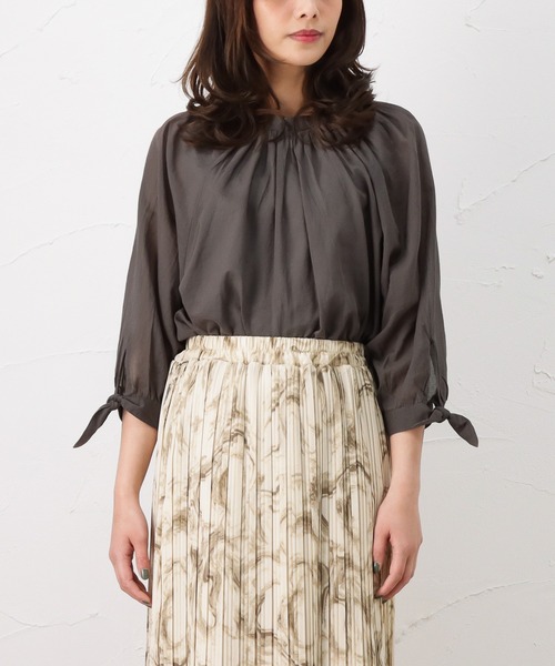 袖と襟ぐりのリボンデザインが可愛い七分袖ブラウスです。 前後2WAYで着用できるのがポイントです。 カラーは、ホワイト・グレー・ネイビーの3色展開です。 インド綿を使用した透け感のある夏にぴったりのアイテムです。 ビッグシルエットでゆったりとした着心地。 いつものデニムはもちろん、ワイドパンツやきれいめのテーパードパンツとも合わせやすい。 ロング丈のスカートと合わせた、女性らしいスタイルもおすすめです。 ■モデルサイズ 163cm 48kg B:80/ W:59/ H:83 着用サイズ:F ※商品画像は、ご覧になられているパソコン、ディスプレイ等の設定により、実際の色味とは異なる場合がございます。