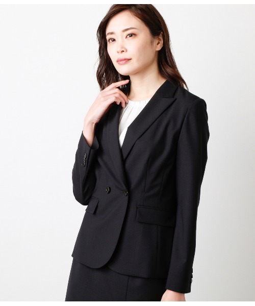 手洗い可能な嬉しいイージーケア素材ダブルブレストがクールな印象の、セットアップ対応1釦セミピークドラペルジャケット。軽く着られる一重仕立て、手洗い可能なイージーケア素材でお作りしたので、汗ばむ季節も清潔を保って着回せます。■素材ウール高混率ながらも手洗い可能が嬉しいイージーケア素材。しっかりとした上品なスーツ地の風合いながらも、防シワ性・ストレッチ性を備えており、忙しく働く女性に心強い素材です。■デザイン4面構成で程よくウエストをシェイプした女性らしいシルエットに、セミピークドラペルとダブルブレストデザインを採用することで、メンズライクだけではないバランスのとれた1着に仕上がりました。また、大見返しではなく幅の狭い前見返しにすることで、春夏シーズンでも軽く着用できるように仕立てています。袖口はあきみせ仕様。裏地なし。■コーディネート同素材のスカート(品番:51-21-2151)パンツ(品番:51-31-2151)とのセットアップでのスタイリングで、オフィスやオケージョンシーンにぴったりの清潔感を演出できます。もちろんお手持ちのボトムとの単品使いにも馴染み、1着お持ちいただくとフレキシブルに活躍してくれそうです。■シーズン2021年春夏商品