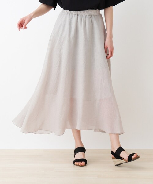 【デザイン】 ガーゼ素材のカラースカート。 春らしいカラーをご用意しました。 色違いで毎日履きたい、シンプルデザインもポイントの一つです。 ボリュームがありながらも、とても軽いので着心地は快適です! ※ポケットなし 【生地感】 風合いがとても柔らかく、心地よい肌触りです。 ※こちらの商品はやや透け感があるため、インナーの着用をおすすめします。 ※裏地あり モデル情報:身長167cm B78 W62 H88 着用サイズ:00 店舗へのお問い合わせ商品番号:C62-72015 ●製品寸法: 00(FREE):W63~80cm H90cm 総丈94cm 備考: