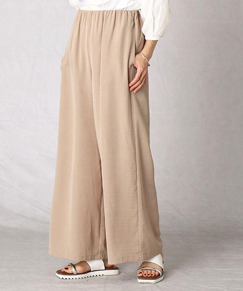 《素材》表面にシワ感のある、さわりとした肌触りのワイドパンツです。 軽く、薄手のポリエステル素材に、クリンクル加工(シワ加工)をしています。 生地に凹凸感があるので、肌と生地の接地面が少なく、肌がはりつかないように工夫しました。 《デザイン》 ウエスト部分はオールゴム仕様。 ベルト切り替えがないので、ウエスト周りがスッキリとしたデザインです。 分量感のあるパンツですが、軽く、なめらかな素材で軽やかな印象。 ※画像の商品はサンプルとなりますので実際の商品と仕様、加工、サイズが若干異なる場合がございます。 ※こちらの商品はFIVE FOXes独自の採寸方法となっています。 本サイトのサイズガイドと採寸方法が異なる場合がありますのでご了承ください。