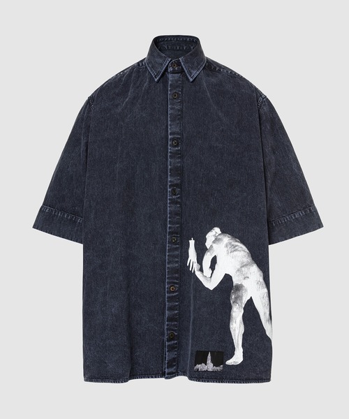 th×VIER ANTWERP堀内太郎氏が手がける「th」と、アントワープを拠点にするストリートショップ「VIER ANTWERP」によるコラボレーションアイテム。堀内氏自身が頻繁にストアに訪れ 「VIER」のアイテムを愛用していた事からスタートしました。「VIER ANTWERP」はスケートショップでありながら、デザイナーやクリエイターなどが多く出入りするストア。PRADAやRAF SIMONSといったコレクションブランドから、STUSSYやC.Eなど、多岐にわたる独自のセレクションで現代の新しいスケートカルチャーを体現し注目を浴びています。ブリーチ加工のオーバーデニムシャツ。フロント・バックともに左部に入ったプリントがポイント。10オンスの縦糸ブラックデニムを使用して縫製し、製品の状態でブリーチ加工した後、ブルーカラーをオーバーダイする事で、シーム部分に当たりが生まれ、ヴィンテージ感のある風合いに仕上がっています。