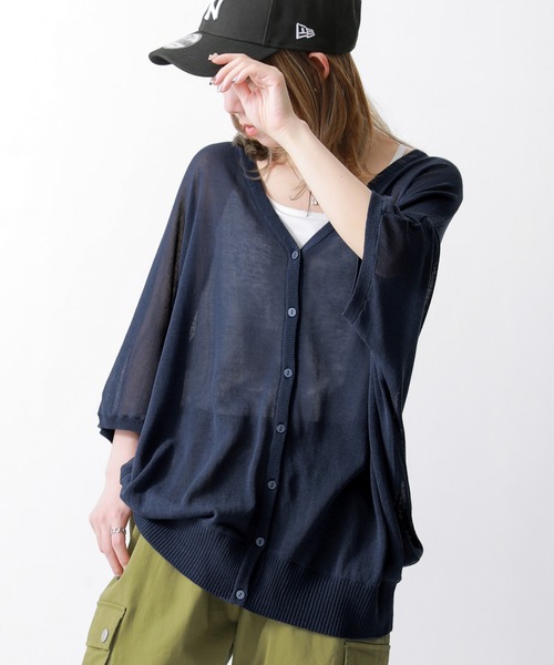 程よい袖の長さで気になる二の腕も隠してくれる、五分袖ニットカーディガン。UVカット加工でお洒落に紫外線対策ができます。持ち運びにも便利な薄手の素材なので、コンパクトにたたんで気軽に持ち歩くのもおすすめ◎オフィスや通勤時の冷房対策としても便利。どんなインナーの上にも気軽にさっと羽織れる、当店自慢のドルマンシルエット。後ろのヨークをなくして、すっきりとしたシルエットにしました。裾幅は広めに調整し、計算された絶妙な丈感で、シンプルなのにセンス良く魅せてくれる。細く綺麗な糸をハイゲージで編み込んだ、透け感のある軽い素材のニット生地。優しい印象を与えるやわらかな風合いで、薄手ながらも丈夫な作りです。コーデの即戦力、≪n'OrLABEL≫涼ニットUV五分袖ドルマンカーディガンです。※UV加工は永久的なものではなく、洗いを繰り返すことで効果は弱まります。【ニット製品につきまして】ニット製品は、身体に自然と馴染む伸縮性が特徴となります為、編み上げる行程やプレス仕上げによって多少サイズや風合いの個体差が生じる場合がございます。ニット素材の持つ特性となります為、ご了承の上ご購入いただきますようお願いいたします。また、着用の際ピリングが避けられず、完全に防止することはできません。ピリングができましたら、引っ張ろうとせずハサミや毛玉取り器で丁寧に取り除いてください。ニット素材の持つ特性となります為、ご了承の上ご購入いただきますようお願いいたします。【お手入れ方法】本製品は手洗い(40℃限度)を推奨しております。洗濯の際は、やさしく押し洗いをしてください。自然乾燥の際は、直射日光を避け、日陰で平干ししてください。型崩れや色あせを防ぐためにも、お手入れ方法を守っていただくことをおすすめします。