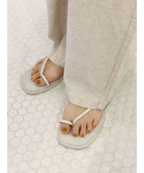 フェイクレザーを使用したサンダルはデザインがアシメになっていてお洒落見えする印象に。 華奢なストラップなデザインとラフなフラット仕様が今の気分にぴったりな1足です。 【※お取り扱い上のご注意】 1:この商品は洗濯や着用中の摩擦、汗、雨等で色移りする事があります。 摩擦により下着、バッグ、ソファー等に色移りする場合があるのでご注意ください。 2:この商品に使用している素材の特性上、耐熱性低い為に、タバコ、ライター、ストーブ等の火や高温の熱にはご注意下さい。 経年変化で剥離等の劣化現象が起こる恐れがありますのであらかじめご了承下さい。 また、濃色の場合は摩擦により下着、バッグ、ソファー等に色移りする場合があるのでご注意ください。 淡色の商品はデニム等色落ちするボトムからの色移りにも十分ご注意ください。