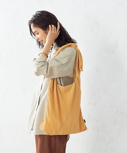 《デザイン》少し深みのあるカラーと、プリーツ素材がマッチしたトレンド感のあるバッグ。ショルダー部分のリボンのような結び目が、デザインポイント。とても軽く、伸縮性があり、マチなしですがA4サイズが収納できる容量もしっかりあります。スタイリングのアクセントになるアイテムです。《素材》プリーツ加工されたツヤ感のあるポリエステル素材です。《仕様》内装:ポケット×1《取り扱い》この商品は、染料の特性上、摩擦、水濡れにより色落ちする事があります。ご注意下さい。濡れた場合は乾いた布でふきとり、陰干しして下さい。汚れ落しの為のベンジン類は使用しないで下さい。※画像の商品はサンプルとなりますので実際の商品と仕様、加工、サイズが若干異なる場合がございます。※こちらの商品はFIVE FOXes独自の採寸方法となっています。本サイトのサイズガイドと採寸方法が異なる場合がありますのでご了承ください。