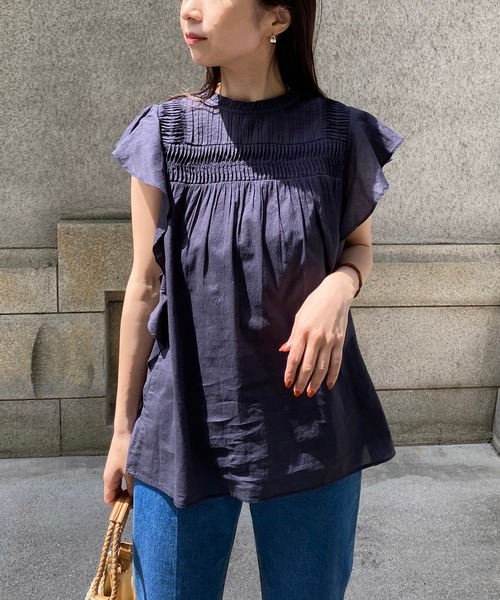 オトナフェミニンなコーデが完成するコットンブラウス 胸元の細かなピンタックとお袖のフリルが目を惹く1枚。 インドコットン100%のさらりとした着心地も魅力です。 ・フェミニン要素の詰まった可愛らしいデザイン ・胸のギャザーがふわっと立体的なシルエットに ・スタンドカラーのフリルもポイント ・お袖のフリルがひらっと動きをプラス ・気になる二の腕もしっかりカバー ・デニムやカーゴパンツでカジュアルに ・裾をインしてタイトスカートに合わせても◎ ▼手洗い可能 ※撮影場所やお使いのモニター環境により若干お色味が異なる場合がございます。 特にロケの撮影では明るく見える傾向にございます。 ※商品はサンプルで撮影をしております。若干の仕様が変更になる場合がございますので予めご了承の上ご注文くださいますようお願いいたします。 ▼商品のお気に入り登録 完売カラーの再入荷通知や、ラスト1点の通知、セールの通知も受け取ることができます。 ▼ブランドのお気に入り登録 新商品や再入荷など、いち早くブランドのお得な情報を受け取ることができます。