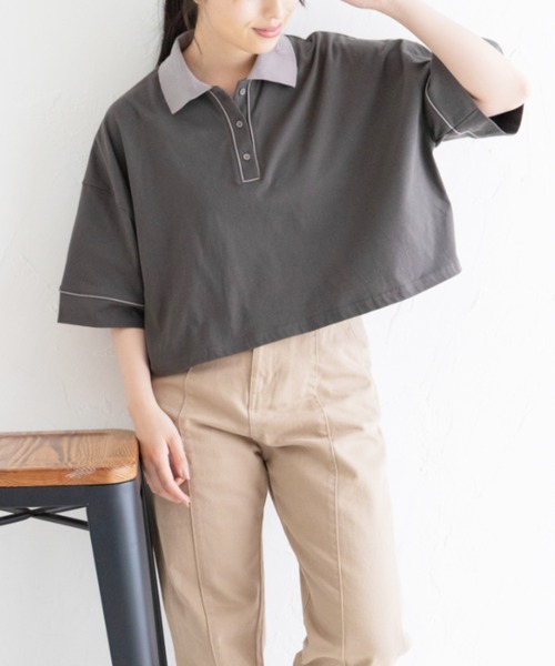 古着風なデザインとショート丈のシルエットが可愛い配色ポロシャツ<MATERIAL>軽くて柔らかく程よい厚さで、着心地の良い生地です。パイピングも同素材での仕様となります。<DESIGN>メンズライクな幅広シルエットでゆったり着られるカジュアルなデザイン。足長効果のある絶妙なショート丈はコーディネートにトレンド感をプラスしてくれます。デニムパンツ合わせでシンプルに着るのはもちろん、キャミワンピにレイヤードして女性らしさのあるカジュアルコーデにも◎<COLOR>キナリ:柔らかな雰囲気の生成りオフホワイト。配色の襟がこなれ感を高めてくれます。チャコールグレー:重たくならないいい感じ引き締めグレー。程よい艶感のハンサムなカラーです。<CARE>※詳しくは製品に付属している洗濯表示をご参照ください。※撮影環境により、多少実際のカラーと異なる場合がございます。 また、携帯やスマートフォン、パソコンなどの画面上と実物では多少色が異なって見える場合がございます。