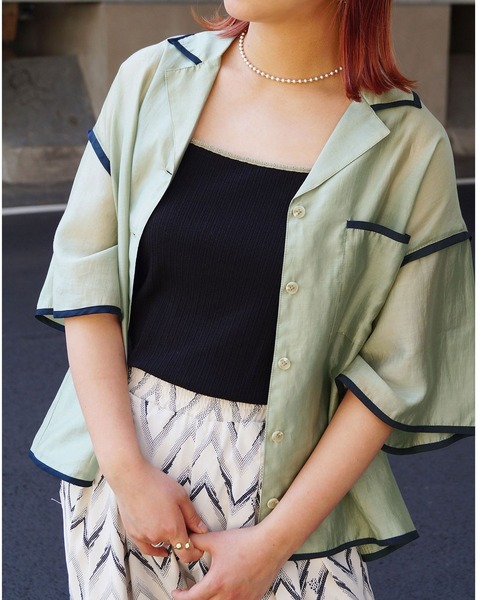 パイピングが特徴的なシアーシャツ。179/WGらしい配色で、ボーイッシュにシアーシャツを取り入れることが出来ます。前明きで羽織として着ても使える1枚。涼しげな素材が夏らしくて可愛い◎※屋外での撮影画像は、光の当たり具合で色味が違って見える場合があります。商品の色味は、スタジオ撮影の画像をご参照ください。