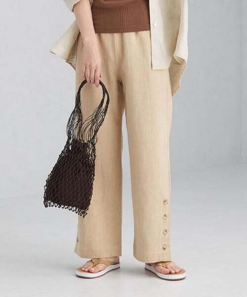 話題のブランドMissing you already(ミッシングユーオールレディ)からグリーンレーベルの為に生まれた新レーベル<MYA(エムワイエー)>。 グリーンレーベルらしいアレンジが魅力のシリーズです。 サイドのボタンデザインがキャッチーな一着。 麻素材ならではのナチュラルな風合いが、大人の女性に似合うリラックス感を演出します。 ウエストはゴム仕様なので穿き心地も快適♪ 着回しに便利なブラック・ベージュカラーをご用意致しました。 程良いワイドシルエットなので、長めのワンピースとレイヤードしたスタイリングも今年らしくて素敵◎ ナチュラルなムードが漂うパンツは、かごバッグやフラットサンダルなど夏小物と相性抜群です! 【MYA (エムワイエー)】 20SS春夏、パリで初のコレクションを発表した韓国発のブランド"Missing you already(ミッシング ユー オールレディー)"から、グリーンレーベルの為に生まれた新レーベル。 Missing you already(ミッシング ユー オールレディー)は、大切な人との別れの後の恋しさをテーマに、ワールドデビューした注目の新ブランド。 程よくトレンドを取り入れたバカンスを思わせるカジュアルなリラックスウェアを得意とします。 ---------------------------------- ケア方法:手洗い可・ドライクリーニング ---------------------------------- ▼お気に入り登録のおすすめ▼ 気になる商品は「お気に入り」登録がおすすめ! お気に入り登録商品は、マイページにて現在の価格情報や在庫状況の確認が可能です。 お買い物リストの管理に♪是非ご利用下さい。 ※こちらの商品は麻素材を使用しております。多少のシワやネップが見られますが、こちらは素材特徴の一つとなります。他の製品では味わえない自然な風合いをお楽しみ下さい。 店舗へお問い合わせの際は、全国のgreen label relaxing各店舗まで下記の品名/品番をお申し付け下さい。 品名:SC MYA SIDE BTN PT 品番:3614-399-2191 #フルレングス#ストレート#ワイド#無地#ワンポイント#カジュアル#デイリー