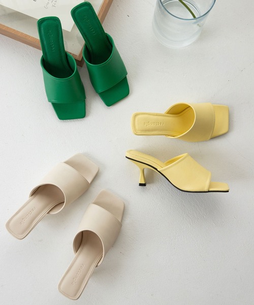 ラフなのにきちんと感を演出するミュールサンダル 1. くびれの効いたヒールがエレガントな雰囲気に華奢ながら安定感も兼ね備えたデザイン性のあるくびれヒール。6cmヒールの高さを感じさせない楽さを持ちながら、スタイルアップも叶えてくれます。 2. 洗練された雰囲気を醸し出すスクエアトゥ今季もトレンドのスクエアトゥで女性らしく旬の足元に導きます。3.足に馴染む柔らかなフェイクレザー アッパーは柔らかなフェイクレザーを使用し足に自然にフィット。甲に沿うようなアッパーデザインは、見た目のシャープさだけでなく、足を包み込み安定感も抜群です。 さっと足入れできるシンプルなデザインなので、デイリーにも活躍します。4.履き心地にこだわったインソール 低反発クッションを敷いたインソールで履き心地抜群。足の負担を軽減します。5. シーズンムード高まる4色展開ニュアンス感のあるアイボリーは絶妙なカラー!定番ブラックはカジュアルからモードまで幅広いテイストにマッチ。今季トレンドのイエローとグリーンは履くだけで一気に旬顔に!夏気分を盛り上げてくれる遊び心のあるカラー展開です。 《サイズ感》普段のパンプスやサンダル着用サイズと同じサイズ感で問題ありませんでした。 ※履き心地には個人差がございますので、あくまでも目安としてご覧ください。 ※ご覧のモニター環境や撮影環境により実際の商品と多少色味が異なって見える場合がございます。ご理解の程よろしくお願いいたします。【お買い物をよりお楽しみいただく為に】▼商品のお気に入り登録をおすすめします♡をクリックしてください。完売カラーの再入荷や、ラスト1点の通知、セールの際の通知を受ける事ができます。ブランドのお気に入り登録もご一緒にお願い致します。
