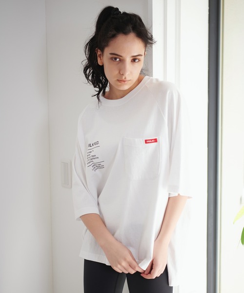 スポーティなデザインが魅力のポケットTシャツ タウンユースはもちろん、ワンマイルのお出かけ、おうち時間にも! MILKFED.横浜 STAFF 身長:152cm********* 年齢:10代後半/普段サイズ:S 着用サイズ:ONE SIZE サイズ感:ゆったり大きめで身幅も広めです。袖丈も肘よりだいぶ下になります。 着心地:固めの素材感ですがゆったりしていて着やすいです!首元も結構広がっているのでラクです♪ オススメコーデ:結構ビッグシルエットなので、スキニーと合わせてインしても可愛いです!ロゴが裾があるので、そのままインせずにロングスカートに合わせるのもおすすめです。シンプルなデザインなので大人な方も着やすいアイテムです! ************************** ■ラグランの切り替えがスポーティなデザイン ■MILKFED.らしいグラフィカルなメッセージプリントをプラスして、よりアクティブなイメージが際立つ一着 ■ドロップショルダーで二の腕が隠れる袖丈は、華奢見せできるちょうどいいシルエット ■前後差のあるヒップが隠れる着丈で細身のパンツとも相性◎ ■体のラインを拾いすぎないワイドシルエットも魅力 【スタイリング提案】 ゆるっとしたオーバーサイズシルエットのTシャツには、柄物のロングスカートやワンピースと合わせると、女性らしく着こなせます。メンズライクなシルエットはアクティブにレギンスやイージーパンツを合わせて、レジャーシーンやおうち時間を過ごすのにもぴったり。 ・透け感:透ける ・伸縮性:あり ・生地の厚さ:普通 ・裏地:なし ※ホワイトで計測しています 【取り扱い注意事項】 素材の特性上、他の衣類との摩擦や汗・雨に濡れた場合、色にじみ・移染の恐れが有ります。濡れた場合は素早く拭き取り乾かして下さい。 ※画像の商品は光の照射や角度により、実物と色味が異なる場合がございます。 また表示のサイズ感と実物は若干異なる場合もございますので、予めご了承ください。 ※画像の商品はサンプルとなります。 実際の商品と色味、仕様、加工、サイズ、素材等が若干異なる場合がございます。