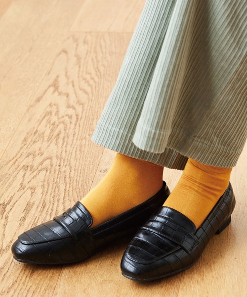 すっきり見えてゆとりあり♪ 型押しクロコでカチッときめて 足もとに大人の気品ときちんと感。 お出かけやお仕事はもちろん、いつもの服に合わせてもコーデ全体が格上げされる上品なフォルムと素材感。 つま先に向かって細くなるすっきりデザインだけど、4Eの木型でゆったりした作りだから、幅広甲高さんも安心の履き心地です!