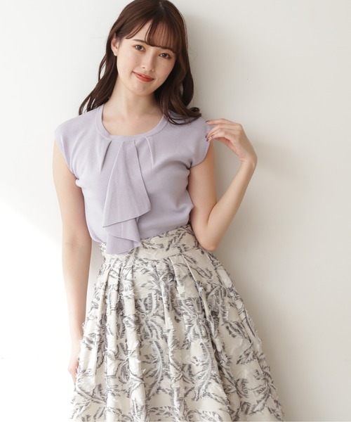 上品に着られるフロントラッフルトップス。ブラウスライクなデザインのラッフルがポイントです。 体のラインを拾いすぎないシルエットながら、 裾リブで引き締めているのでブラウジングがしやすいです。 スカートにもパンツにも合わせられるのでデイリーに活躍します。 ※商品の撮影はサンプルで行っている為、 カラーやサイズ等に変更がある場合がございます。 予めご了承ください。 ※人物着用の画像は、 光の当たり具合や撮影環境により、 色味が違って見える場合がございます。 正しい色味は物画像をご参照ください。