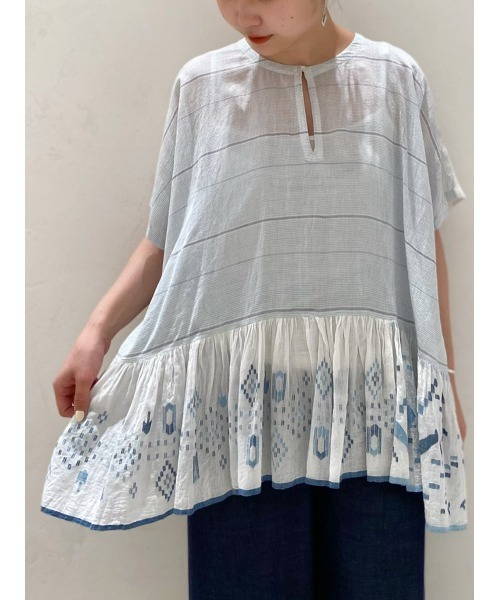淡いライトブルーのグラデーションが素敵な「INJIRI(インジリ)」のチュニックブラウス。裾下の切り替えにたっぷりとギャザーを寄せ、織によって再現した模様が際立ちます。チュニック丈ですので、デニムやワイドボトムと合わせるのがオススメ。《INJIRI》インド・ジャイプールのブランド。インドの伝統的でローカルな織物と衣服をイメージソースに再構築しています。美的観点からの視点を重視し、日々のファッションを追うことなく、確かな伝統技術と豊富なアイディアを、信念に基づいて製作。import【商品をお気に入り登録しておきましょう!】気になるアイテムは、♡マークをクリックしておくことで、スムーズにお買い物が楽しめます。・ラスト一点のお知らせ・再入荷のお知らせ・予約商品が店頭に入る際にお知らせ・SALEのご案内