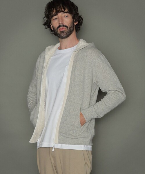 【着用推奨シーズン:春・夏・秋】<素材>1時間に1m程度しか編めない吊り編み機によって編まれたソフトな裏毛を使用しています。糸がリラックスした状態で編み上げられる裏毛は洗いこむほどに吊りニット独特の柔らかさを楽しめます。非効率と引き換えに作り出された味わい深い素材です。<デザイン>天竺面とパイル面の両方で着用できるリバーシブル仕様のフーデッドパーカーです。その日の装いや気分で、マルチにコーディネートを楽しんで頂けます。同素材のスウェット(G1P78501)やショートパンツ(G1P90501)と合わせて着用していただくことも可能です。モデル:H184 C92 W78 H94 着用サイズ:L