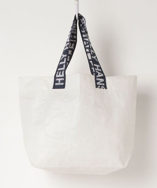 セイルクロスのような風合いの、ポリエチレン素材を使用したバッグ。素材感を生かしたシンプルな無地で、ハンドルのHELLY HANSENのロゴがポイントになっています。生地に防水性があるため、買い物にはもちろん、水遊びやキャンプで濡れたものを入れておくのにも重宝します。サブバッグとしても活躍する小さめの横型トートタイプです。