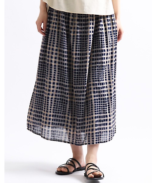 ~ゆがみチェック柄が柔らかい雰囲気に♪~少しゆがんだチェック柄プリントが個性的な表情を見せる、大人かわいい雰囲気のミモレ丈スカートです。薄手のインドコットンのさらりとした肌触りが軽やかで、気持ちの良い着心地。ウエストギャザーが映える、ふわりと軽やかなシルエットながらもボリュームが出過ぎないのがポイントに♪ウエストは総ゴム仕様で、内側の紐によって調節も可能。コットンの裏地付きなので、透け感を気にせず一枚で着用できます。着丈82cm< 便利なお気に入りの登録 >◇商品お気に入りの登録♡をクリックして再入荷の通知や、ラスト1点の通知、プライスダウンの通知がいち早く届くようになります。◇ブランドの登録新商品や再入荷など、いち早くブランドのお得情報が届きます。是非ご登録ください◎※お取扱いにつきましては、商品についている品質表示をご確認ください。※ご覧いただいておりますPC、スマートフォンの環境により、 若干製品と画像の色が異なる場合がございます。予めご了承下さい。