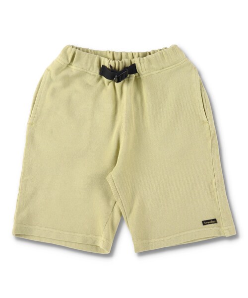 とても柔らかいステップニットを使用したハーフパンツです。段のある網目と加工したカラーがほどよいビンテージ感を出しています。フェイクベルトがアクセントになっています。 ----- 伸縮性:あり 裏地:なし ポケット:あり